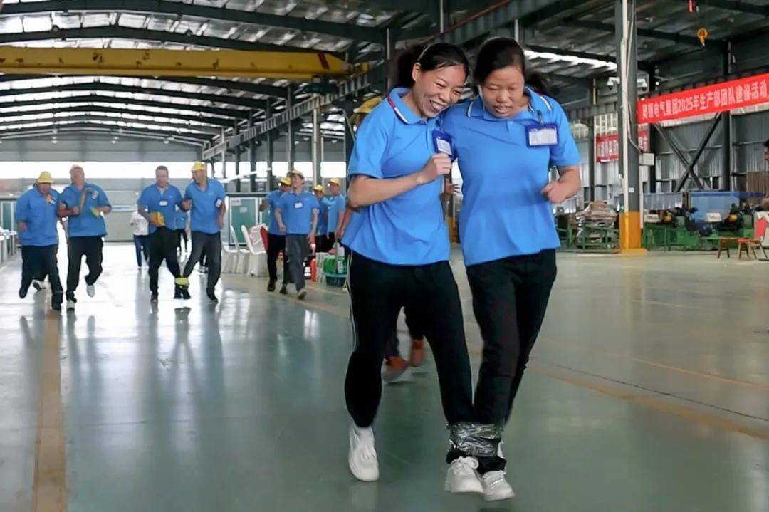 随后进行的 “两人三足” 和 “摸石过河” 项目,着重考验团队的协作与配合能力。“两人三足” 中,参赛员工两两绑定脚踝,共同向前奔跑,大家步调一致、口号统一,充分展现了 “1+12” 的团队力量;“摸石过河” 项目里,员工们借助道具快速移动,在考验平衡能力的同时,也培养了大家的策略思维与团队协作意识。各参赛队伍奋勇争先,现场加油声、呐喊声不绝于耳,充分展现了成套生产部员工积极向上、勇于拼搏的精神风貌。