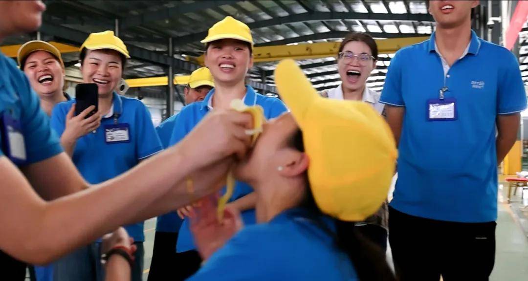 “吃香蕉” 游戏则充满了趣味性与挑战性。工作人员将香蕉悬挂在指定高度,参赛员工需在蒙眼状态下,原地转三圈后走向香蕉并吃完。过程中,有的员工因方向偏差闹出笑话,有的则在队友的指引下顺利完成任务,现场充满了欢乐的氛围。这个项目不仅让大家放松了心情,更增进了同事间的互助与信任。