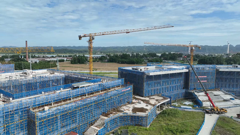 9月15日,走进成都艺术职业大学(以下简称“成艺大学”)青神校区二期项目施工现场,机械轰鸣声交织成奋进乐章,塔吊挥舞巨臂运送建材,施工人员各司其职、紧张作业,处处洋溢着火热的建设氛围。